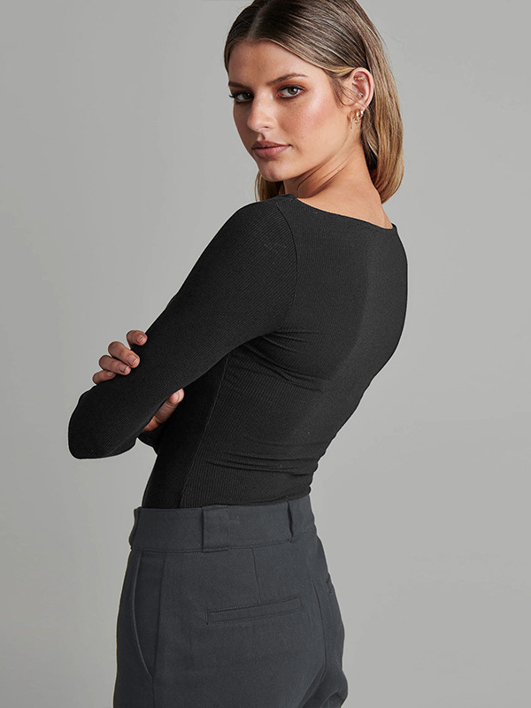 بدلة جسم نسائية أنيقة من ZASUWA بتصميم ضيق وأكمام طويلة - أسود / S تم طلبه مرة أخرى وسيتم شحنه بمجرد عودته إلى المخزون.