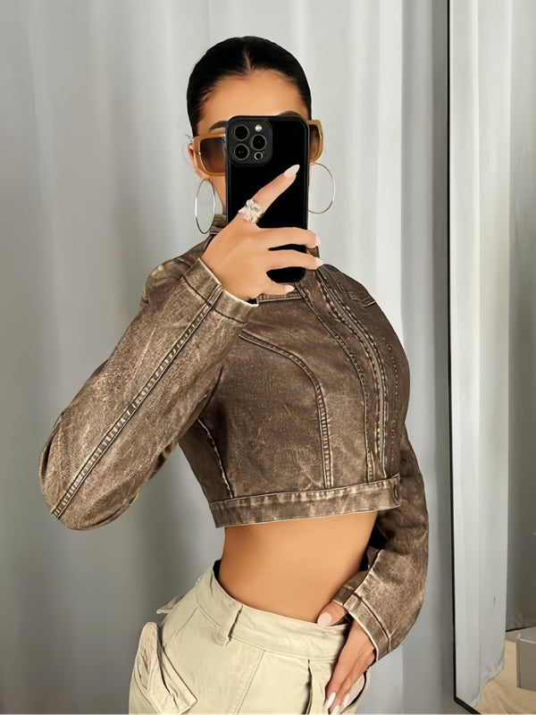 ZASUWA Female Zipper PU Stand Up Collar Jackets