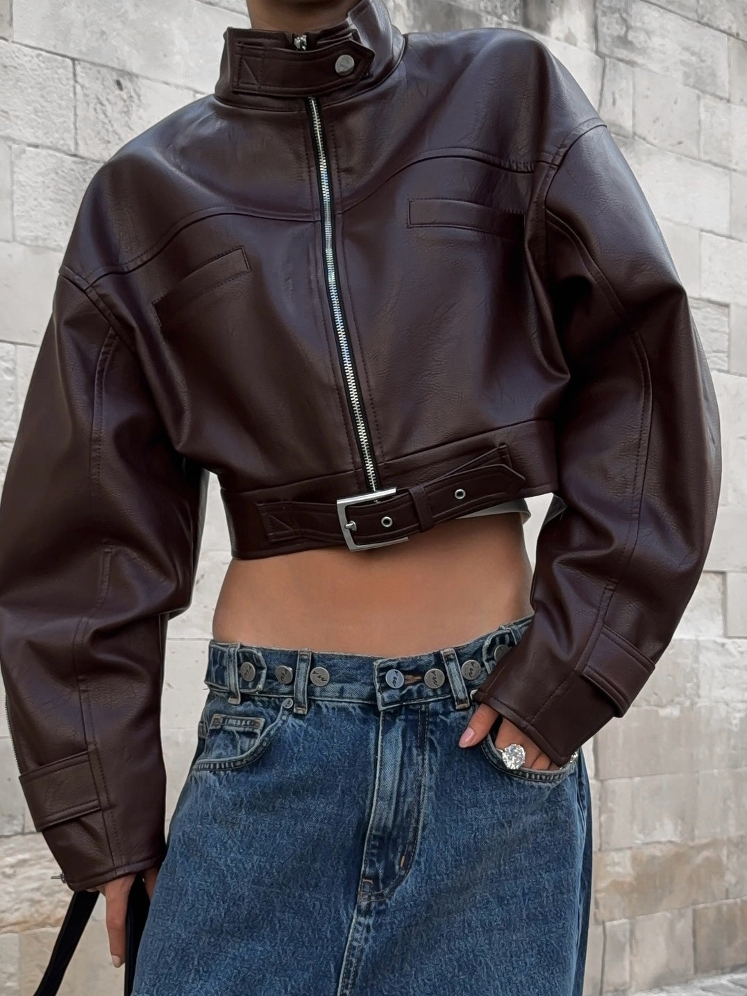 ZASUWA Female Zipper PU Trench Collar Buttons Jackets