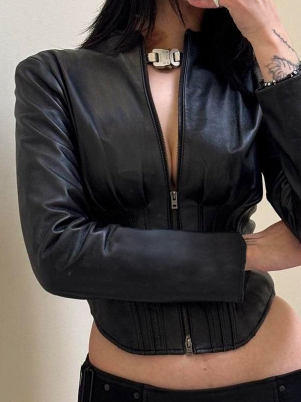ZASUWA Female Faux Leather Corset Zipper Jacket