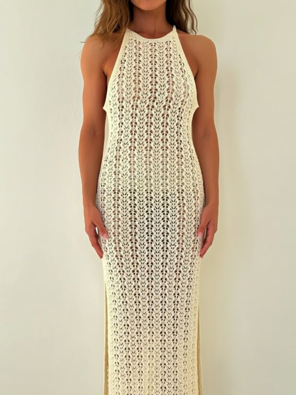 ZASUWA Female Vacation Style Backless Halter Cut-Out One-Piece Dress