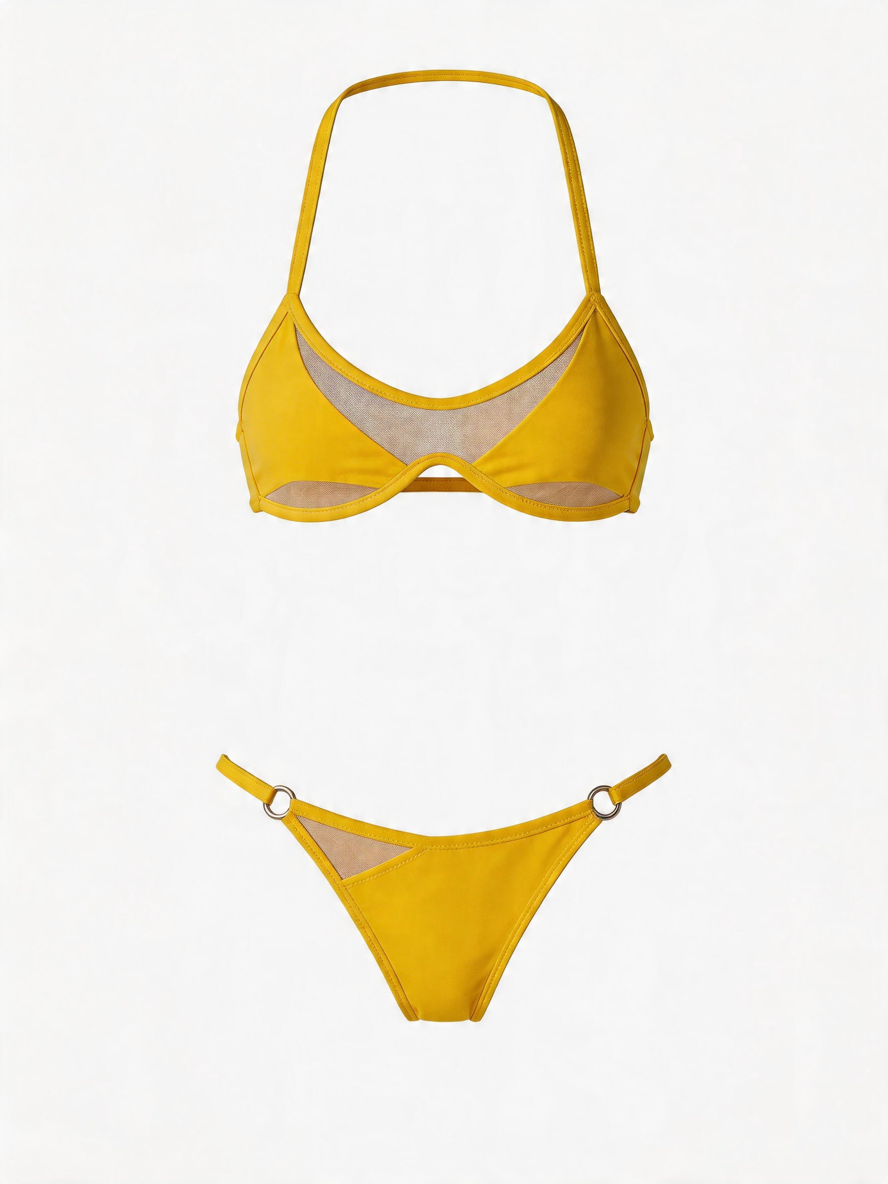 Mesh Spliced Cutout Tie Bikini