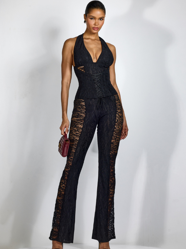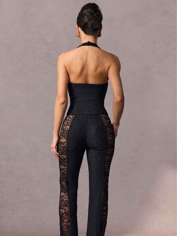 ZASUWA Female Fashionable Paneled Lace V-Neck Jumpsuit - Black / S ist auf Lager und wird versandt, sobald es wieder verfügbar ist