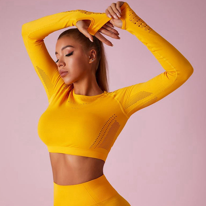 ZASUWA Female Long Sleeve Knit Seamless Fitness Long Sleeves