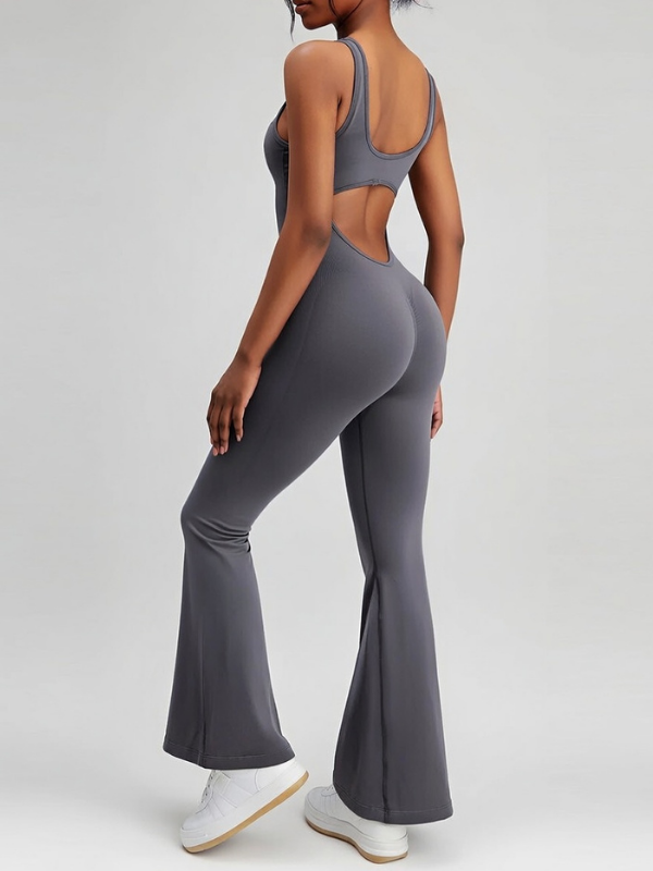 ZASUWA Female Backless Scrunch Bum Flare Jumpsuit - Dark Gray / S est en rupture de stock et sera envoyé dès qu'il sera disponible