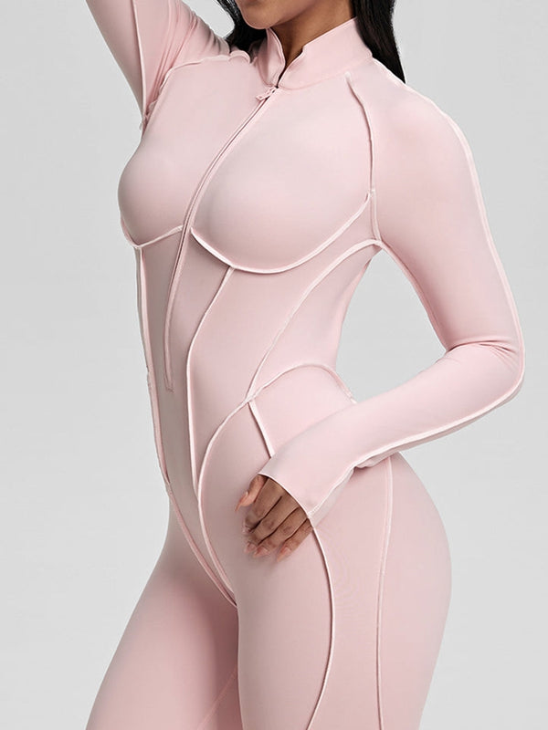 ZASUWA Female Sexy Backless Zipper Contrast Color Stripes Jumpsuit
