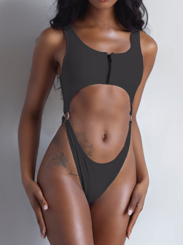 ZASUWA Female Sexy Zip Up Cutout Cropped One Piece