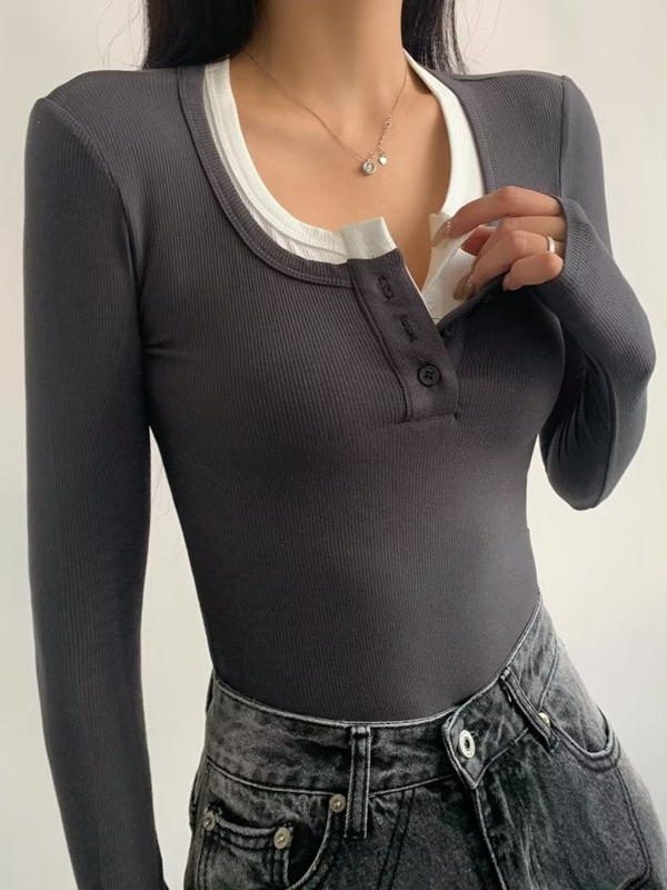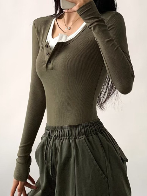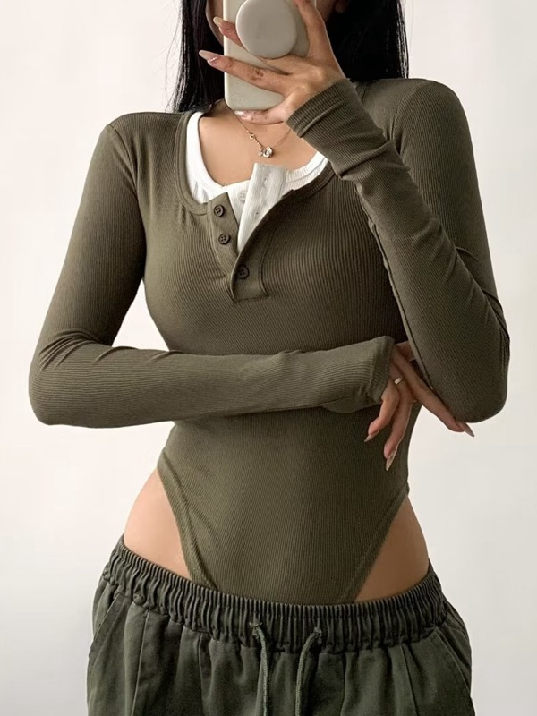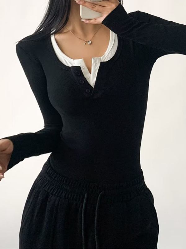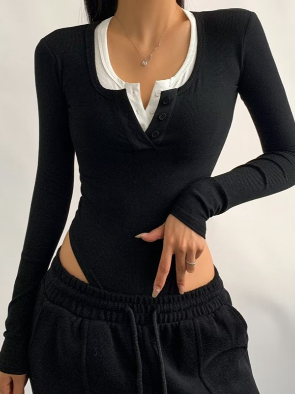 ZASUWA Female Color-Block V-Neck Ribbed Fashion Bodysuit
